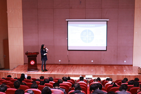 在講座上,劉老師通過列舉各高校實驗室安全事故,讓大家認(rèn)識到實驗室安全的重要性。她還談及了實驗室內(nèi)可能遇到的主要危險、事故、相應(yīng)的防范要點及應(yīng)急手段等內(nèi)容。并發(fā)放了實驗室安全教育手冊。