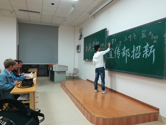 10月24日,機(jī)械工程學(xué)院團(tuán)委學(xué)生會(huì)、新聞社到新生宿舍區(qū)進(jìn)行報(bào)名宣傳,17級(jí)新生對(duì)各部門的工作、職責(zé)進(jìn)行咨詢,并結(jié)合自身特點(diǎn)和意愿考慮要加入的部門。