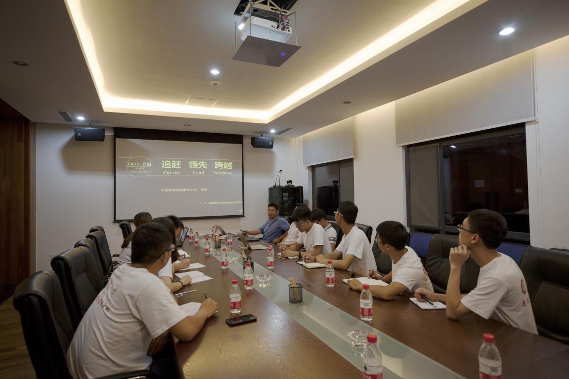 之后,FAST負責人組織召開了以《追趕·領先·跨越》為主題的學術座談會。基地副總工程師李輝圍繞FAST進行各類問題的講解,同學們興致盎然,踴躍提問,相關系統(tǒng)負責人也積極為同學們答疑解惑并勸導同學們腳踏實地學習,同時也歡迎同學們在未來加入FAST共事。在輕松的氛圍和熱烈的掌聲下,座談會圓滿結束,同學們意猶未盡并對接下來的實踐活動充滿期待。