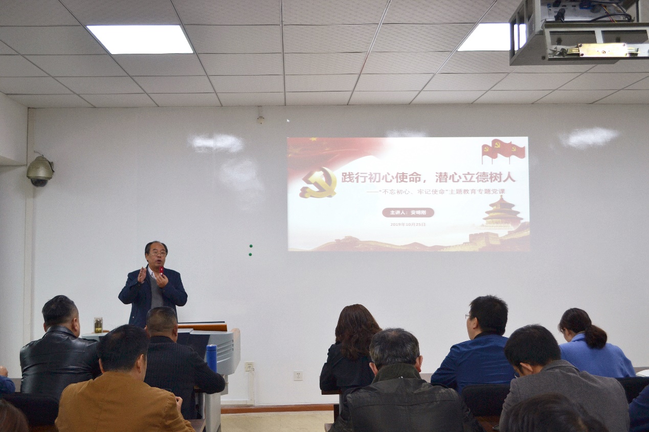 在黨課中,安明剛書記圍繞“踐行初心使命,潛心立德樹人”主題,從踐行初心使命是中國(guó)共產(chǎn)黨百年奮斗的根本動(dòng)力;潛心立德樹人努力實(shí)現(xiàn)新時(shí)代高等教育的新作為;要全面聚焦學(xué)習(xí)深刻領(lǐng)會(huì)開展“不忘初心、牢記使命”主題教育的豐富內(nèi)涵;要立足教育守正高等教育的初心使命;要結(jié)合本職工作踐行立德樹人的責(zé)任擔(dān)當(dāng)等方面闡述了自己對(duì)聚焦立德樹人根本任務(wù)、深入踐行黨的初心和使命的認(rèn)識(shí)和理解。