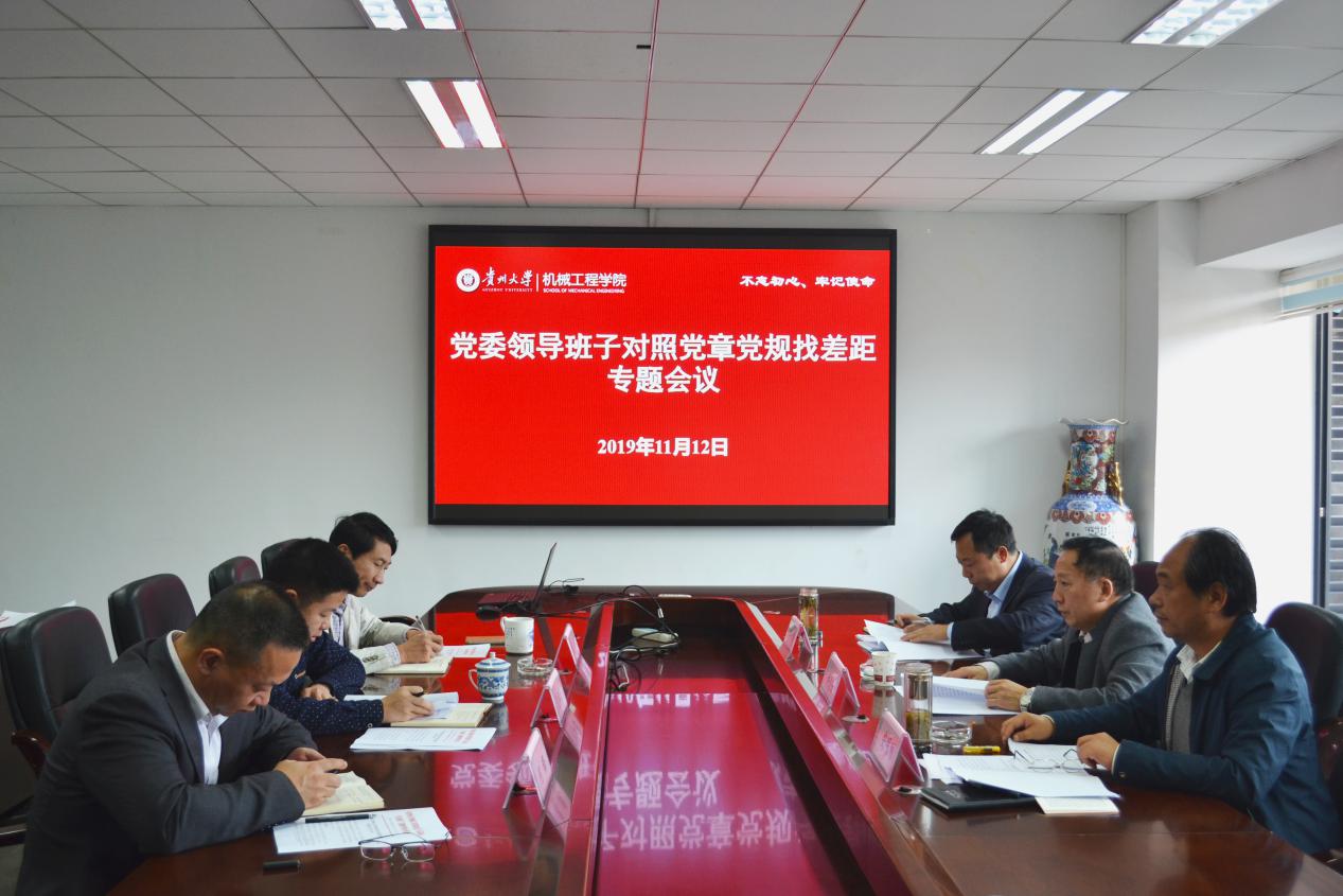 11月12日下午,貴州大學(xué)機械工程學(xué)院在機械樓518召開了黨委領(lǐng)導(dǎo)班子對照黨章黨規(guī)找差距專題會議,學(xué)校第四巡回指導(dǎo)組組長許道云,學(xué)院黨委書記安明剛、院長李少波、黨委副書記代祥社、副院長楊勤、副院長何鋒以及學(xué)院主題教育領(lǐng)導(dǎo)小組辦公室成員敖雙燕、董平等參加了會議。