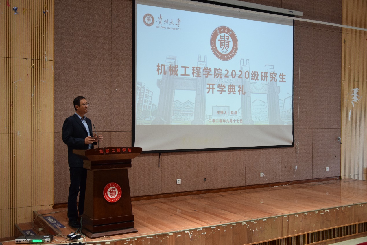 2020年9月17日12點(diǎn)10分,機(jī)械工程學(xué)院于圓形報(bào)告廳舉行了2020級(jí)研究生開(kāi)學(xué)典禮。機(jī)械工程學(xué)院院長(zhǎng)李少波教授,黨委副書(shū)記代祥社、副院長(zhǎng)楊勤教授、趙津教授,導(dǎo)師代表吳懷超教授、梅益教授以及研究生科老師出席了本次活動(dòng),趙津副院長(zhǎng)主持了此次開(kāi)學(xué)典禮