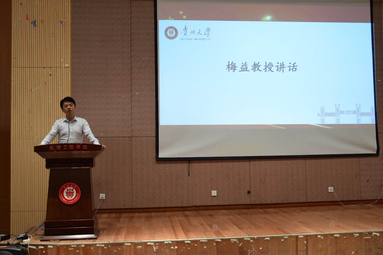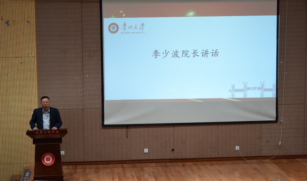 活動(dòng)伊始,首先由李少波院長(zhǎng)對(duì)2020級(jí)新生的到來(lái)表示了熱烈的歡迎,向新生們介紹機(jī)械工程學(xué)院的基本情況,從學(xué)院的歷史、發(fā)展、期望三方面對(duì)機(jī)械工程學(xué)院進(jìn)行詳細(xì)的介紹。李院長(zhǎng)衷心的希望機(jī)械工程學(xué)院的新生們能在歷史悠久、學(xué)術(shù)氛圍濃厚的貴州大學(xué)實(shí)現(xiàn)自己的夢(mèng)想,書(shū)寫(xiě)人生的新篇章。