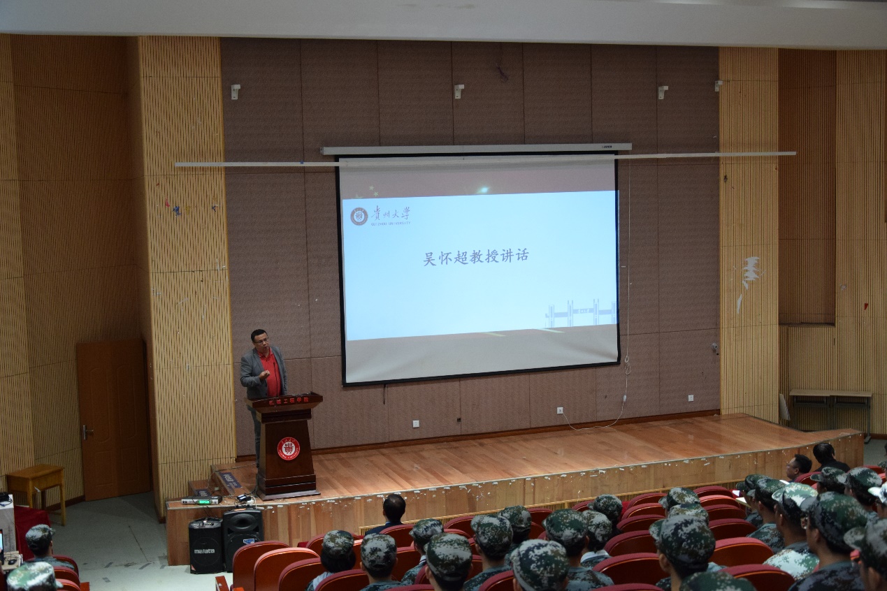隨后,導(dǎo)師代表吳懷超教授上臺(tái)發(fā)言,吳老師結(jié)合了自身的科研經(jīng)歷,回憶了自己讀研和帶研究生的生涯。給了同學(xué)們?nèi)c(diǎn)建議,(1):學(xué)生一定要發(fā)揮自己的主觀能動(dòng)性,主動(dòng)學(xué)習(xí);(2)做好自己每一天的時(shí)間規(guī)劃,合理利用時(shí)間;(3)培養(yǎng)自己的抗壓能力,在研究生生涯中遇到挫折是常有的事,要有強(qiáng)大的抗壓能力去面對(duì)科研的壓力,這樣的研究生的每一步才會(huì)走得比較堅(jiān)實(shí)。吳老師的講話得到了大家熱烈的掌聲。