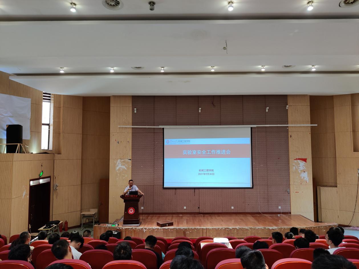 9月30日15:00,機(jī)械工程學(xué)院在圓形報(bào)告廳開展實(shí)驗(yàn)室安全工作推進(jìn)會,副院長何鋒出席會議,實(shí)驗(yàn)室羅寧康老師、研究生科權(quán)紅、田森老師、全院博士生、研究生和部分本科生代表共300余人參加會議。何鋒做安全教育講話,羅寧康老師開展安全技能和安全知識培訓(xùn)。