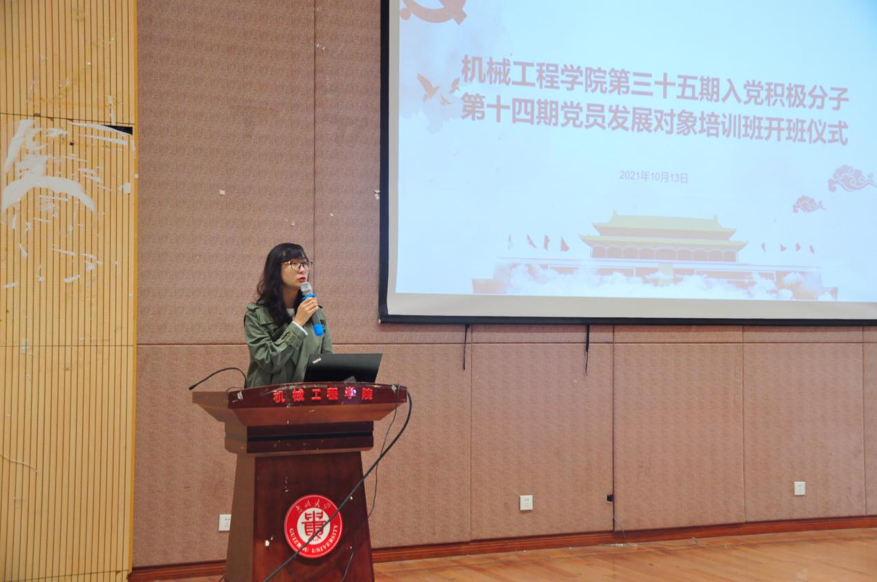 機(jī)械工程網(wǎng)站訊(記者 胡佳|攝影 胡佳)2021年10月13日,貴州大學(xué)機(jī)械工程學(xué)院在機(jī)械樓報(bào)告廳舉行了第三十五期入黨積極分子及第十四期黨員發(fā)展對(duì)象培訓(xùn)班開班儀式,機(jī)械工程學(xué)院黨委書記安明剛、副書記廖燁出席此次儀式,全體入黨積極分子和發(fā)展對(duì)象參加此次儀式,此次儀式由趙麗芳老師主持。