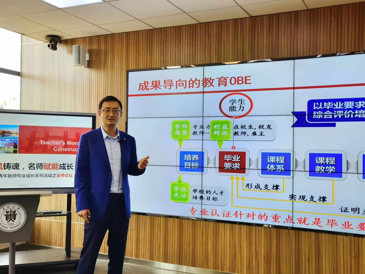 2022年5月25日下午14:30,貴州大學“師德師風鑄魂,名師賦能成長”名師助力青年教師專業(yè)成長系列活動之金師論壇第二期在西校區(qū)德正樓221成功舉辦。本期金師論壇邀請到來自貴州大學機械工程學院院長趙津教授作為嘉賓,面向青年教師們帶來《工程教育中立德樹人目標的設(shè)計與實現(xiàn)》的主題分享。