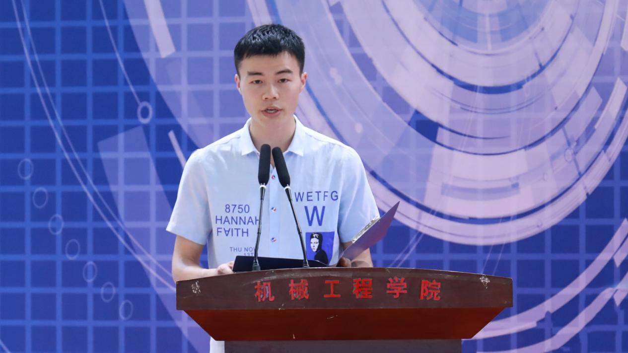 貴州大學(xué)機(jī)械工程學(xué)院機(jī)械設(shè)計(jì)制造及其自動(dòng)化專業(yè)羅一波同學(xué)代表參賽隊(duì)伍發(fā)言。