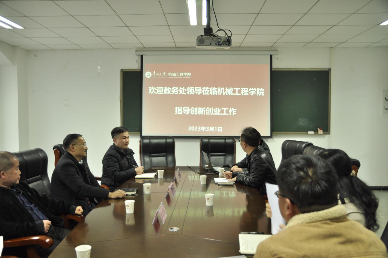 機械工程網(wǎng)站訊(記者 王楚剛|攝影 王楚剛)3月1日下午,貴州大學(xué)教務(wù)處領(lǐng)導(dǎo)蒞臨我院指導(dǎo)學(xué)生創(chuàng)新創(chuàng)業(yè)工作。教務(wù)處副處長黎應(yīng)飛、科長王中杰、副科長余志強、曾建文老師,機械工程學(xué)院副院長李家春出席會議,教務(wù)科、學(xué)生科老師相關(guān)老師及部分學(xué)生代表參加會議。