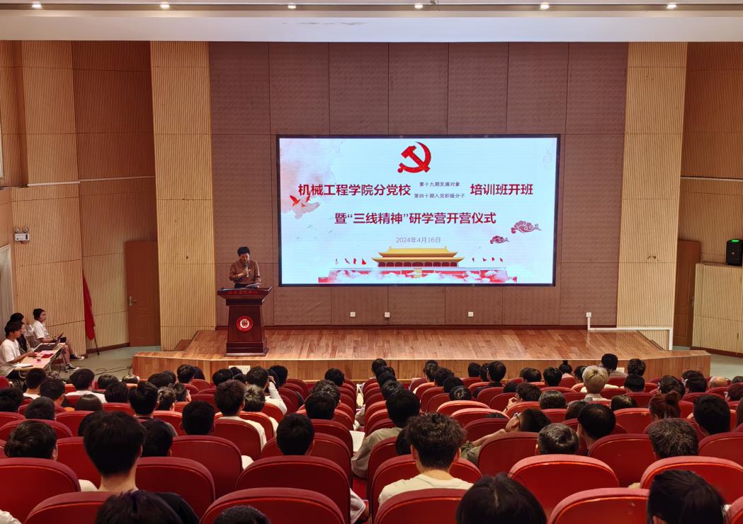 2024年4月16日,機械工程學院召開分黨校第十九期黨員發(fā)展對象、第四十期入黨積極分子培訓班開班暨“三線精神”研學營開營儀式。學院領導班子、黨建負責人、各黨支部書記、學生科、研究生輔導員、全體入黨積極分子、發(fā)展對象培訓班學員約300人參加,儀式由正處級組織員董蔚然主持。