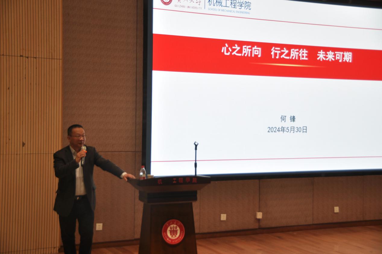 機(jī)械工程網(wǎng)站訊(記者 葉玉蓮|攝影 王佳宇)5月30日,機(jī)械工程學(xué)院關(guān)工委邀請(qǐng)我院前院長(zhǎng)何鋒教授在圓形報(bào)告廳開展“卓越講堂—心之所向,未來可期”講座,講座由正處級(jí)組織員董蔚然主持,學(xué)生科全體輔導(dǎo)員以及所有2023級(jí)機(jī)械學(xué)子參加。