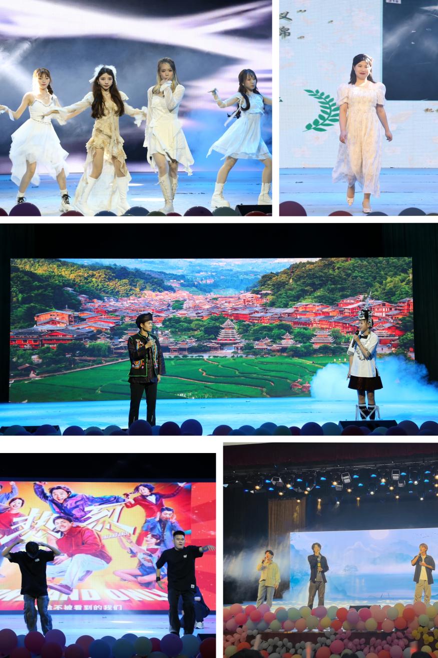 伴隨著熱烈的氣氛,晚會來到最后一個篇章《祝?!?,律動十足的街舞表演將氛圍推向高潮,緊接其后的《教師風采秀》展現(xiàn)了老師們不同一面,由研究生帶來的民族表演《歡迎您到侗寨來》讓觀眾感受到侗族文化的魅力,觀眾們紛紛上臺手牽手圍著圈伴隨著嘹亮的侗族歌聲起舞,享受著快樂熱烈的時光。