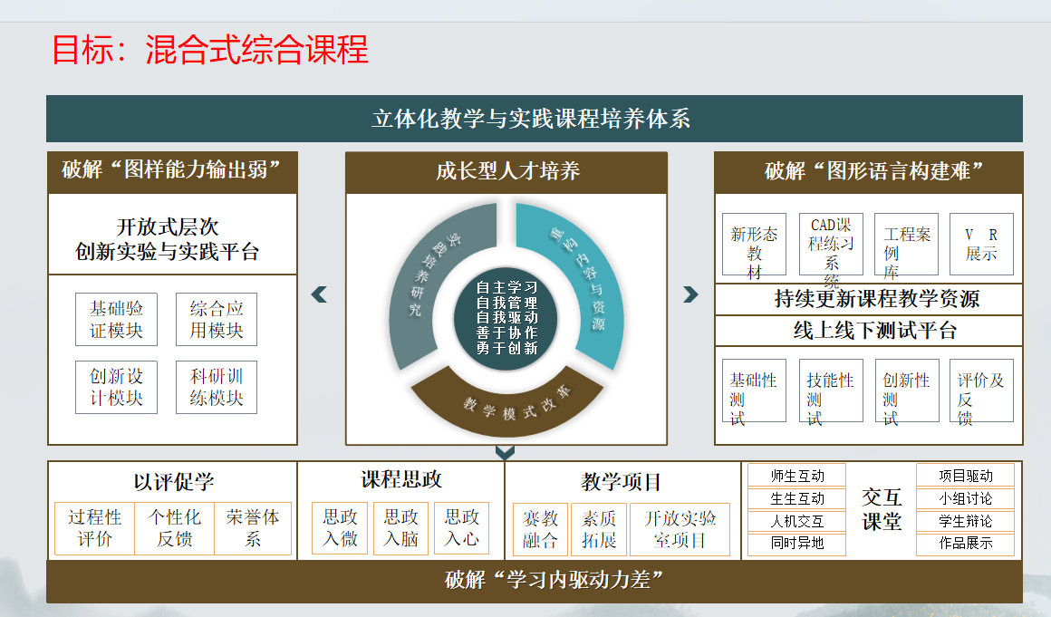 本次公開課由陽明慶老師主講,陽老師以自己申請的國家級一流課程建設為切入點,針對一流課程目標對建設混合綜合式課程,建立立體化教學與實踐課程培養(yǎng)體系,實現(xiàn)教學模式的改革,培養(yǎng)自主學習、自我管理、自我驅動、善于協(xié)作、勇于創(chuàng)新的成長型人才進行了解讀。同時還介紹了教學模式改革包括以評促學、課程思政、教學項目、交互課堂四個環(huán)節(jié)。其中,以評促學環(huán)節(jié)從過程性評價、個性化反饋、榮譽體系來實現(xiàn),課程思政從思政入微、思政入腦、思政入心來要求實現(xiàn),教學項目環(huán)節(jié)的改革體現(xiàn)在賽教融合、素質拓展、開放實驗室項目上;交互課堂環(huán)節(jié)包括師生互動、生生互動、人機交互、同時異地、項目驅動、小組討論、學生辯論、作品展示等方面。