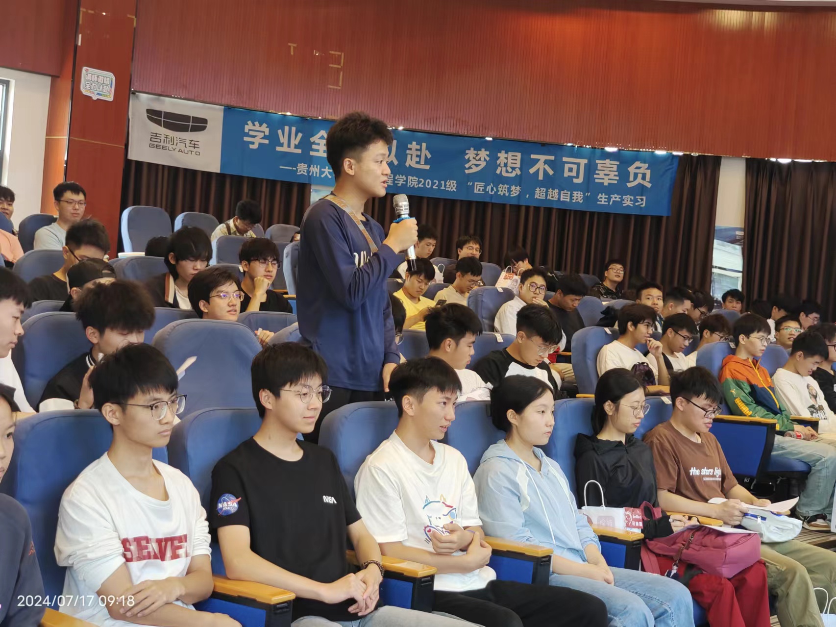 最后,吉利人力資源主管周全輝作了發(fā)言,他介紹了貴陽(yáng)吉利汽車的發(fā)展歷程,并以學(xué)長(zhǎng)的身份和同學(xué)們分享了他的工作經(jīng)歷和經(jīng)驗(yàn),最后,他表示,希望今年在吉利生產(chǎn)實(shí)習(xí)的同學(xué)明年畢業(yè)加入吉利工作。
