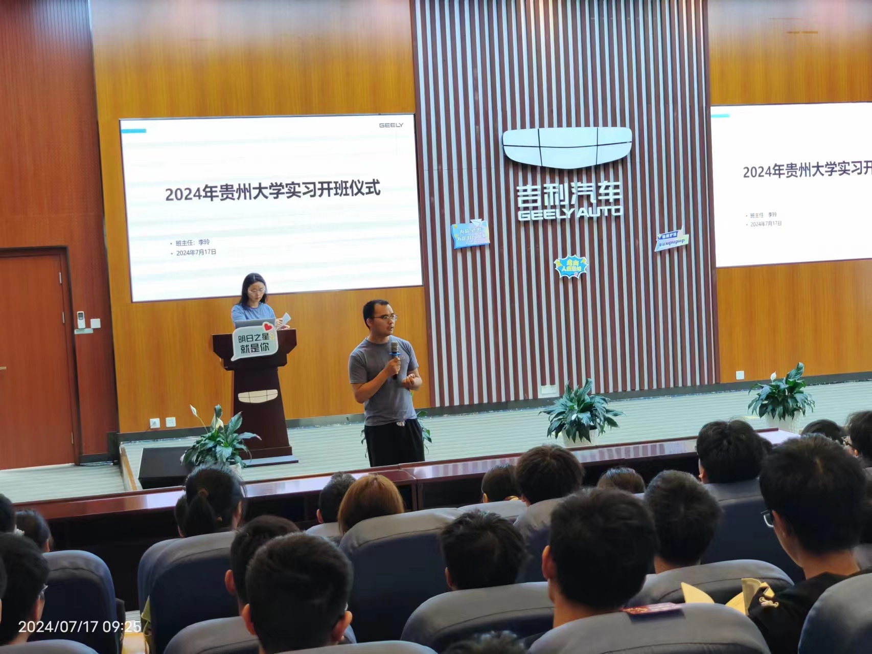 為深化產(chǎn)教融合,培養(yǎng)在校大學(xué)生的實(shí)踐能力,2024年7月17日,我院機(jī)械設(shè)計(jì)制造及自動(dòng)化專業(yè)車輛方向和農(nóng)業(yè)機(jī)械化及其自動(dòng)化專業(yè)生產(chǎn)實(shí)習(xí)開班儀式”在貴陽(yáng)吉利汽車報(bào)告廳舉行。吉利汽車人力資源部主管周全輝、我院車輛系主任韋武、帶隊(duì)教師李惠寧、蔡景勇、楊寧、溫宇鑫、教務(wù)科負(fù)責(zé)人陳馨、教務(wù)科科員聶虹等參加開班儀式。