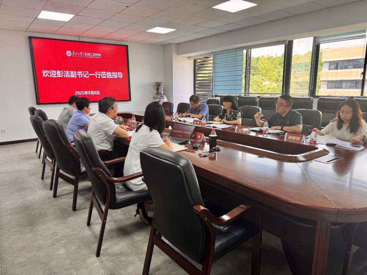 2025年9月8日上午,貴州大學(xué)黨委副書記彭潔、黨委學(xué)生工作部部長龍汶、副部長譚麗娟、黨委研究生工作部部長張小彬一行到機械工程學(xué)院指導(dǎo)調(diào)研“一站式”學(xué)生社區(qū)建設(shè)工作。學(xué)院院長馮毅雄、正處級組織員董蔚然、黨委副書記廖燁、副院長唐正強及“一站式”學(xué)生社區(qū)建設(shè)專班相關(guān)人員參加調(diào)研活動。